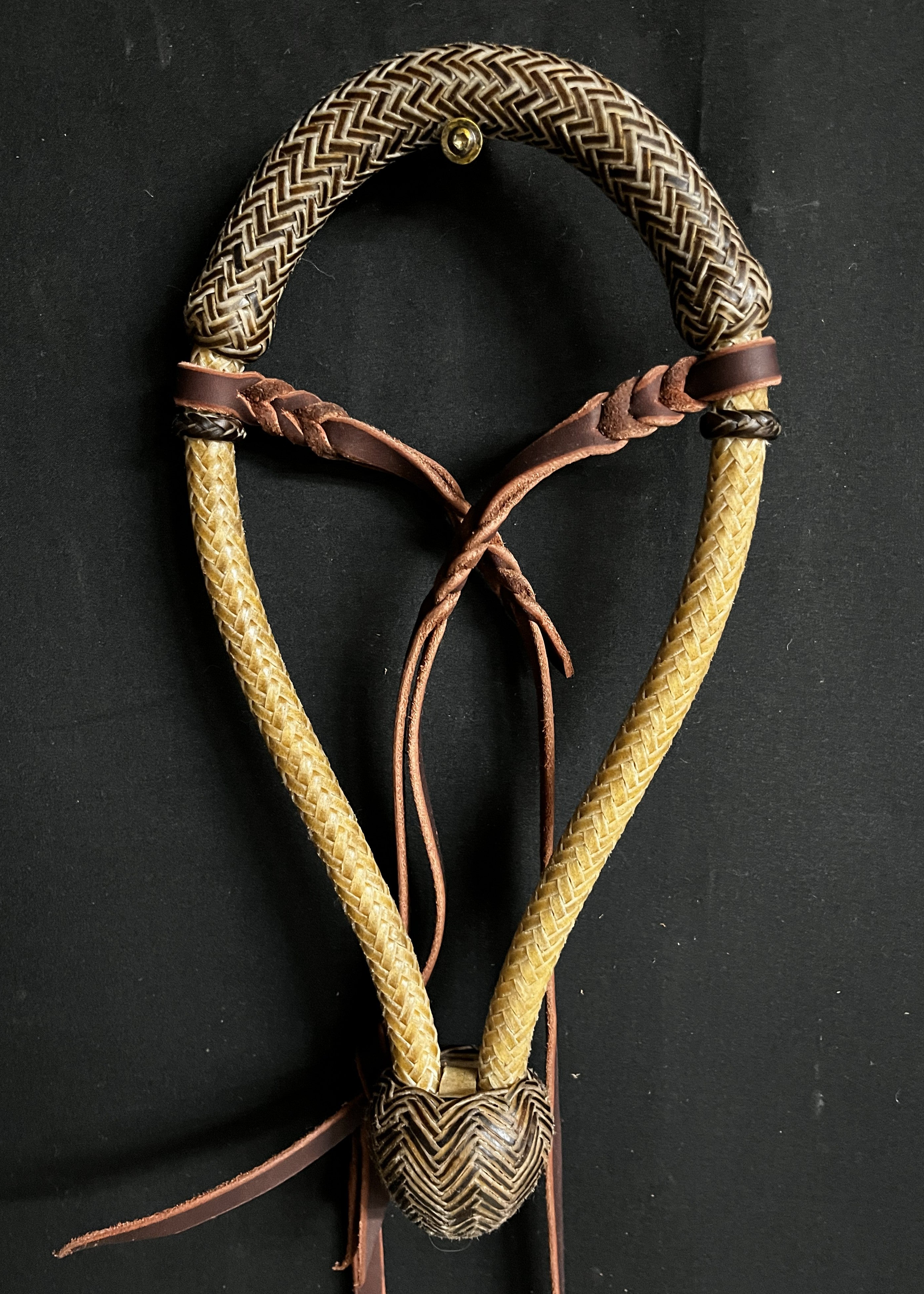 These bosals are made with 16-plait cheeks, 24-plait noses, medium flexibility, and a twisted rawhide core. They come in full rawhide or rawhide with a leather nose and heel knot. Available sizes include 5/8", 1/2", and Bosalitas. Each bosal has a 10.5" inside diameter with a spacer and includes a latigo hanger in the price.