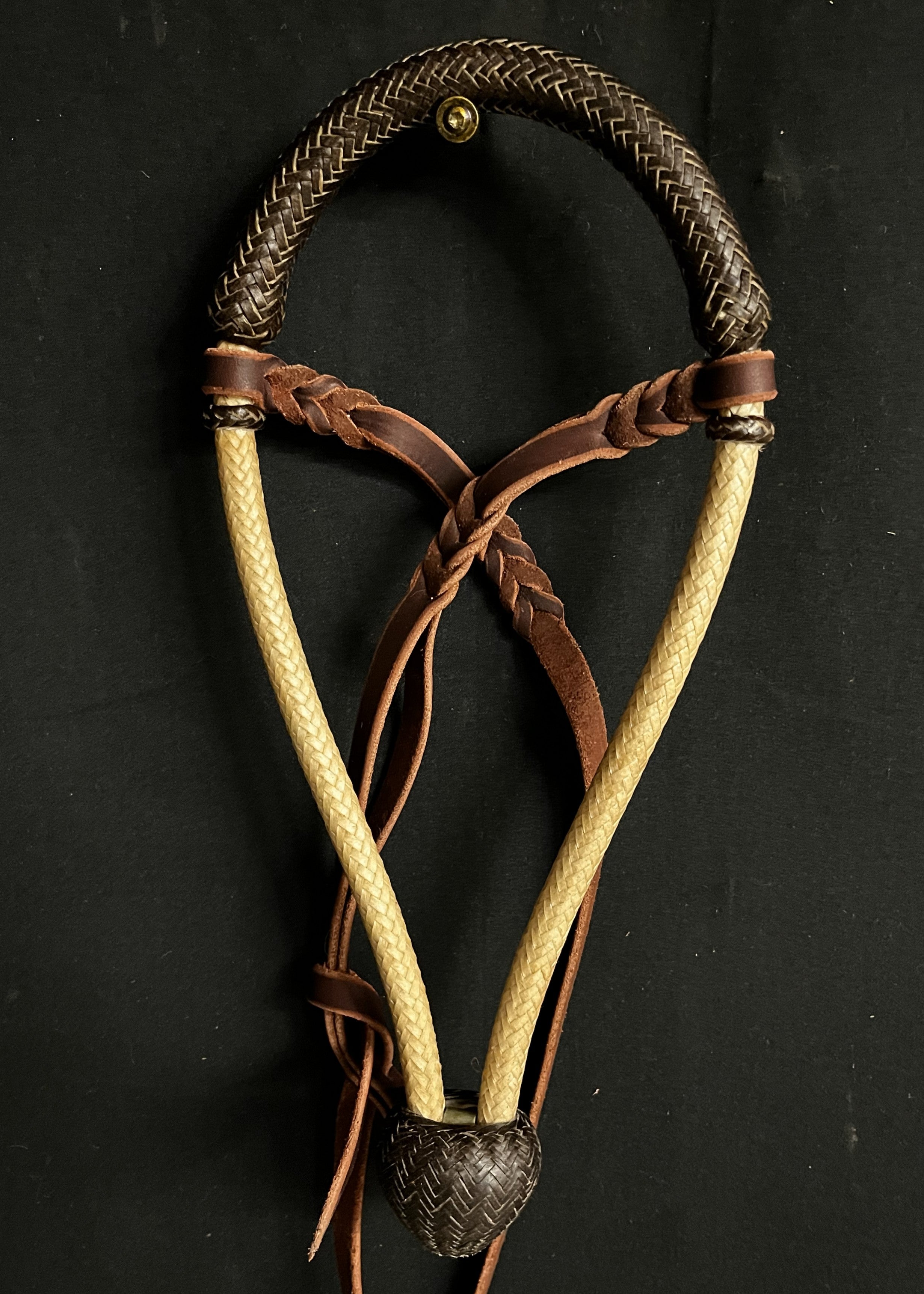 These bosals are made with 16-plait cheeks, 24-plait noses, medium flexibility, and a twisted rawhide core. They come in full rawhide or rawhide with a leather nose and heel knot. Available sizes include 5/8", 1/2", and Bosalitas. Each bosal has a 10.5" inside diameter with a spacer and includes a latigo hanger in the price.
