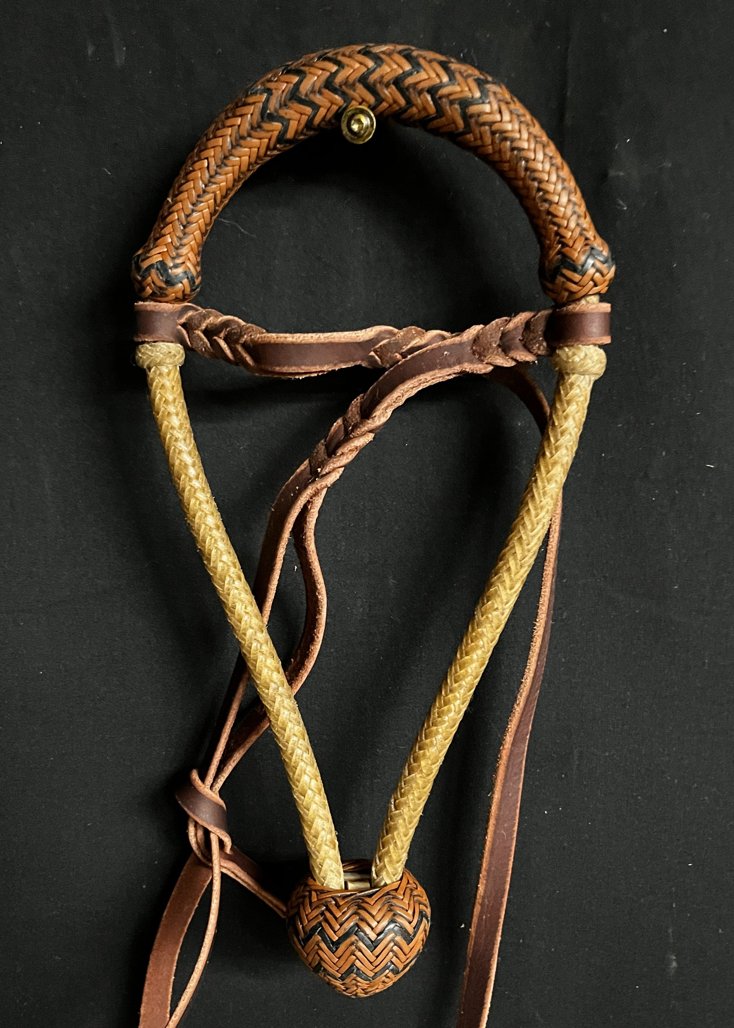 These bosals are made with 16-plait cheeks, 24-plait noses, medium flexibility, and a twisted rawhide core. They come in full rawhide or rawhide with a leather nose and heel knot. Available sizes include 5/8", 1/2", and Bosalitas. Each bosal has a 10.5" inside diameter with a spacer and includes a latigo hanger in the price.