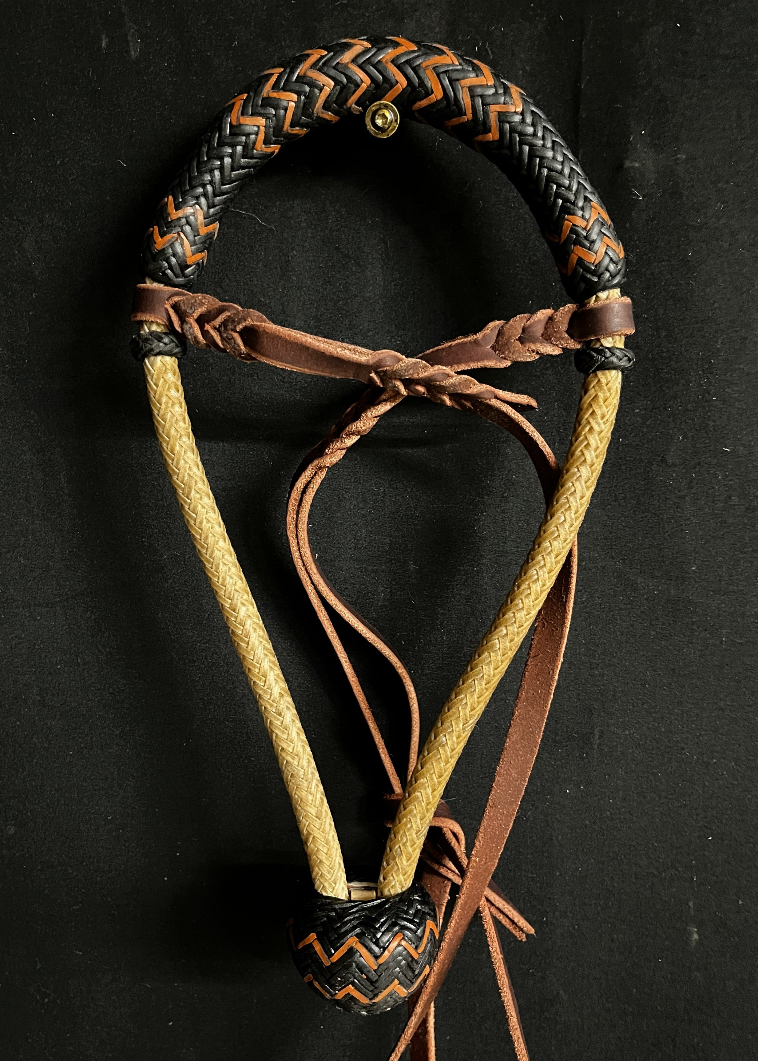 These bosals are made with 16-plait cheeks, 24-plait noses, medium flexibility, and a twisted rawhide core. They come in full rawhide or rawhide with a leather nose and heel knot. Available sizes include 5/8", 1/2", and Bosalitas. Each bosal has a 10.5" inside diameter with a spacer and includes a latigo hanger in the price.